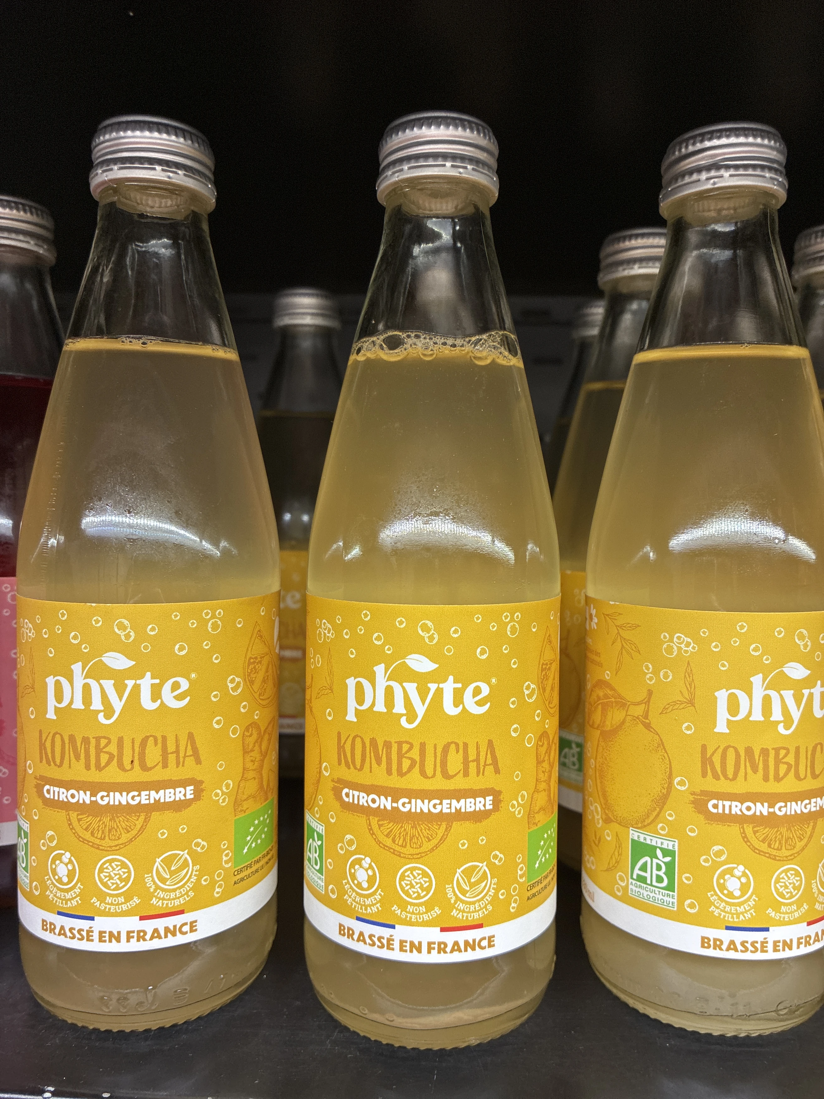 Au delà de nos jus, nous avons aussi développé une gamme de kombuchas. Boisson ancestrale à base de thé bio fermenté, c’est une parfaite alternative aux sodas car peu sucrée, 100% naturelle et riche en probiotiques
